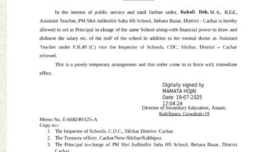 - ডিজিপির প্রশংসনীয় রৌপ্য পদক ২০২৫ এ ভূষিত হলেন ষষ্ঠ আসাম পুলিশ ব্যাটালিয়ন কাছাড়ের ৮জন আরক্ষী